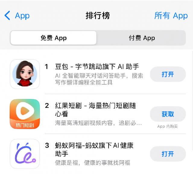 【TechWeb】12月16日消息,蚂蚁集团旗下AI健康应用“蚂蚁阿福”昨日发布后下载量猛增,今日冲上苹果应用榜总榜第三位。