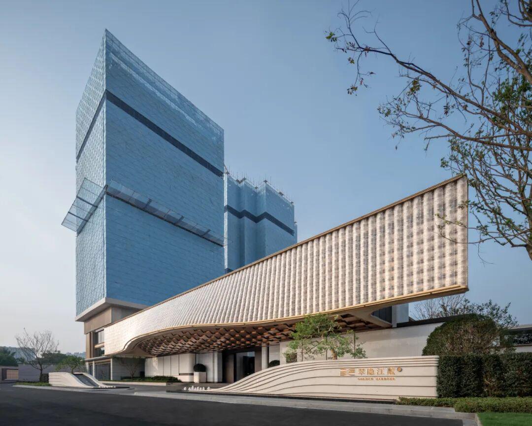 翠隐江粼项目已建成占地约1万方的全维示范区,从建筑到景观,从室内到灯光,所有设计元素围绕大运河的“鎏金岁月”元素展开,形成系统性的设计思维,使项目超越了单维度的建筑美学,把思想意境转化为空间语言,重构大运河的历史遗韵。