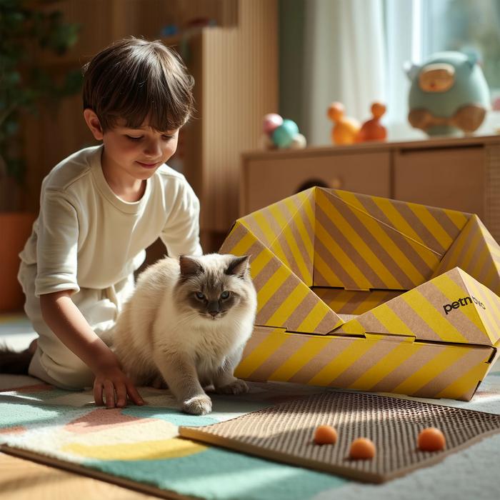产品说明:Travel Nest Eco Fold是一款将“空间美学”与“地球善意”完美融合的环保猫窝。它秉持“负责任消费”的理念,主体选用FSC CoC认证的可追溯纸材,从源头降低森林生态压力。设计上,它采用极简的 “折纸×山形”几何结构,不仅减少了胶钉与五金的使用,更实现了高效的运输与收纳。窝内集成了高密度蜂窝抓板,四面围合的设计既满足了猫咪磨爪与休憩的天性,又保护了家中家具。作为一款全生命周期环保产品,其使用的瓦楞纸在废弃后可完全回收,让养宠生活真正回归自然。