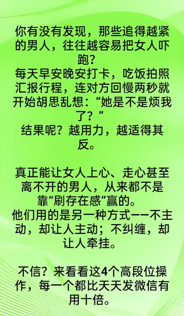 吸引靠质量,靠情绪价值,靠你整个人的稳定感,而不是频率和讨好。