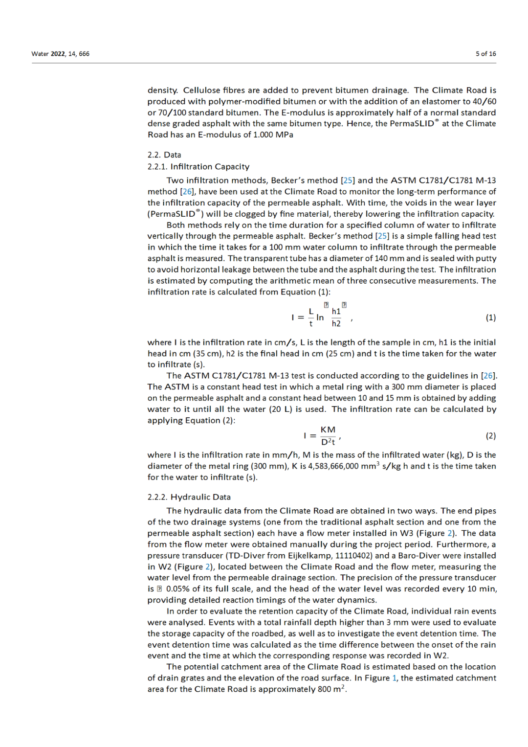 整个项目期间(2019年5月至2021年5月)共观测到1654毫米的降水量。假设集水区为800米2气候道路的减容能力介于15%至30%之间。绝大多数滞留物归功于蒸发,尽管膨润土垫的轻微渗漏也必须预期。