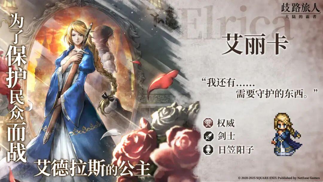 艾丽卡的人气源自剧情,不管是剑士艾尔的战装形态还是艾丽卡的王装形态都很抓人,结合剧情表演能够为大家呈现出一个生动且具体的王女形象,经过数章内容铺垫,所有的情绪在帕蒂斯三世挥刀那一刻达到顶峰!不管是大霸还是歧路旅人0,艾丽卡永远是玩家心中那个意难平。