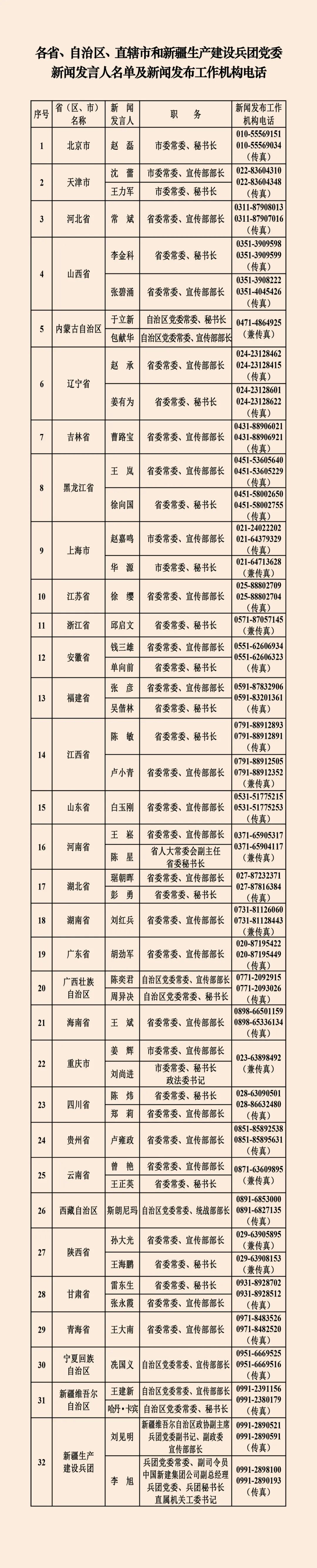据国新网消息,中央国家机关和地方2026年新闻发言人名录公布。