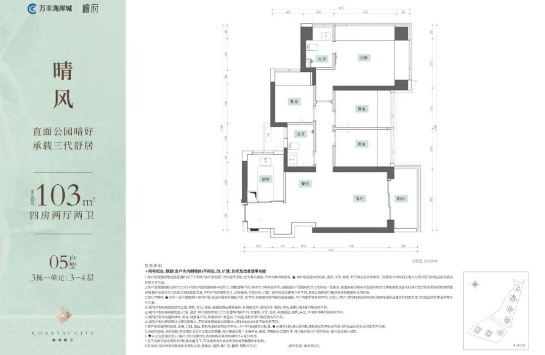 本项目推广名为“万丰海岸城·檀府",官方电话:400 880 7297 本资料为要约邀请,不作为要约或承诺。以上所发布的关于楼盘相关图文信息仅供您买房前参考,以上所有关于本楼盘的图文资料及说明请以最终以项目批文及双方在楼盘营销中心现场签署的买卖最终合同为准;