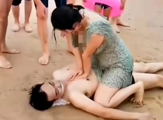 一个小伙游泳时不慎溺水,被好心人救上来时,已经脸色发青、口吐白沫。