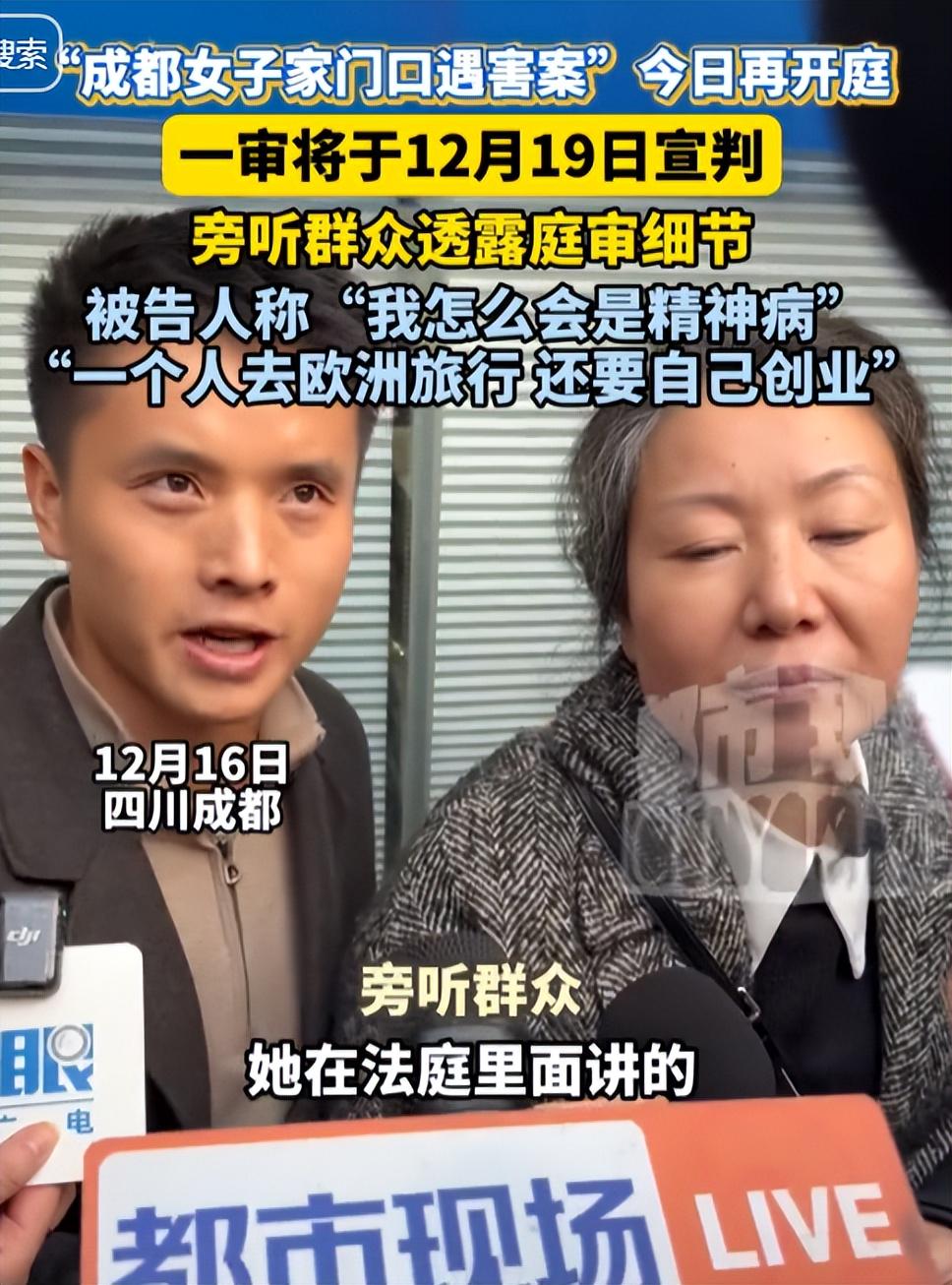 “成都女子家门口被害案”一审第二次开庭,代理律师质疑:被告精神鉴定报告有重大问题--2025-12-16--光明网