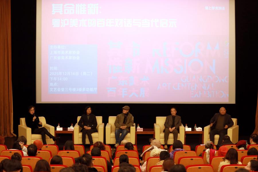 12月16日下午,一场主题为“其命惟新——粤沪美术的百年对话与当代启示”的学术对谈在上海文艺会堂举行。本次活动由上海市美术家协会、广东省美术家协会联合主办,以正在中华艺术宫盛大展出的“其命惟新——广东美术百年大展”为契机,特邀粤沪两地美术界代表性人士齐聚一堂,共叙百年艺缘,共话传承创新。