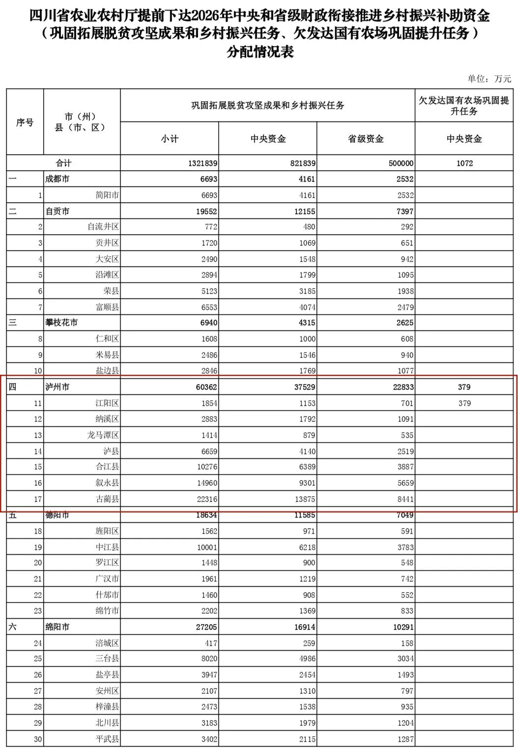 来看看泸州分配了多少
