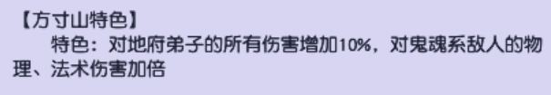 在任务中,魔方寸对地府怪物的输出会提升10%,对有鬼魂术的怪物输出会提升100%。