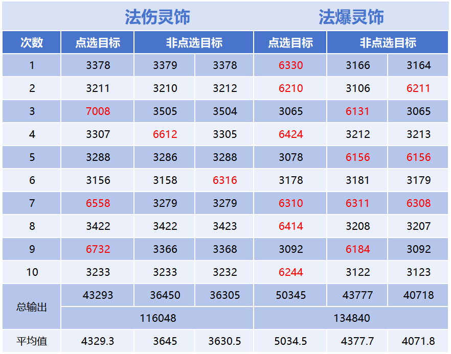 从测试数据可以看出:魔方寸佩戴“法爆”灵饰的综合输出相较“法伤”灵饰要高出约16%左右。