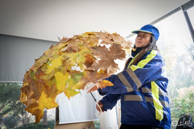 “没想到这么火,本来说是展出半个月,现在大家都热情高涨,展览至少保留到月底过完,而且会不断上新。”这条迅速“出圈”的落叶景观道,由浦东新区市容景观中心联合乳山路养护单位天佑市政共同打造。上海天佑市政有限公司工作人员王昕寰介绍,从前期创意策划,到各种落叶道具制作,再到装饰物的悬挂,耗时一个月。