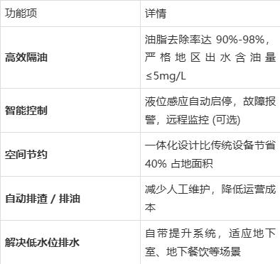 •小型设备(1-5m³/h):适合小吃店、奶茶店等轻油污场景