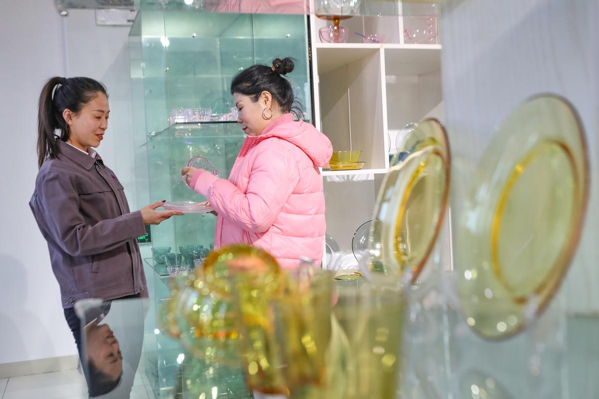 怀来天元特种玻璃有限公司展厅,顾客在选购商品。武殿森供图