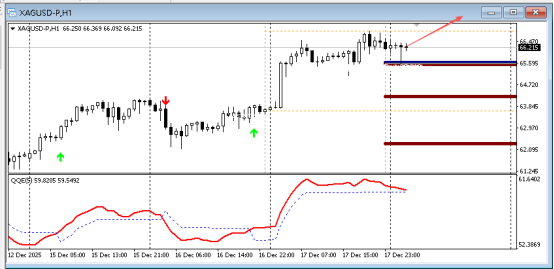目前QE箭头向上,代表多头强劲,预示行情向上的概率大,故而可以采取低多的策略,可以在15分钟寻找做多信号,第一支撑位置:65.68。上方压力66.92
