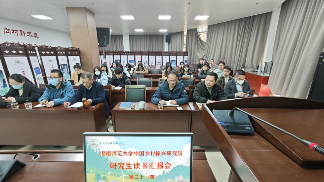 12月17日上午,湖南师范大学中国乡村振兴研究院研究生第三十一期读书报告会在里仁楼举行,陈文胜教授、陆福兴教授、胡扬名教授、刘茜教授、瞿理铜副教授、谢宗藩副教授、程中培博士以及全体研究生参加了此次汇报。研究生代表逐一汇报了近期的读书情况,并分享了对所读书籍的理解与感悟。