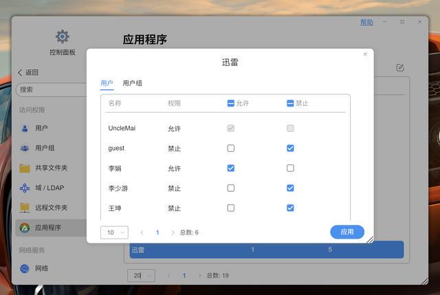 对于应用程序也可以进行精准授权,哪些程序可用,哪些程序禁止,都进行权限设定。