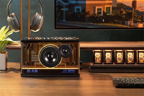 花再NEW系列将工业集装箱元素和水冷系统美学融合,配合声光电一体化技术,打造出机械感与未来感交织的“桌面音箱新物种”。