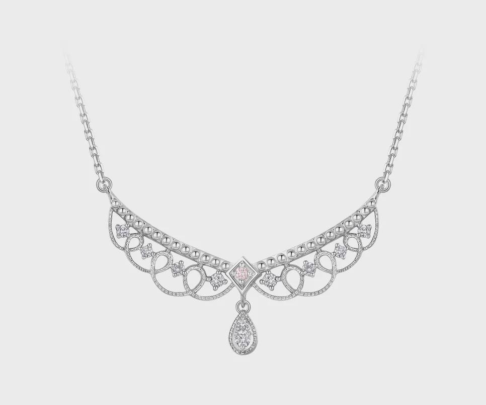 如果这一天有特别的计划,或者就是偏爱公主风穿搭,呢周大福这款城堡烟花钻石项链一定是不二之选,对称的彩带设计让人联想起巴洛克时期极繁主义的宫廷珠宝,纤细而柔美,华丽感十足,很容易成为穿搭上的点睛之笔。