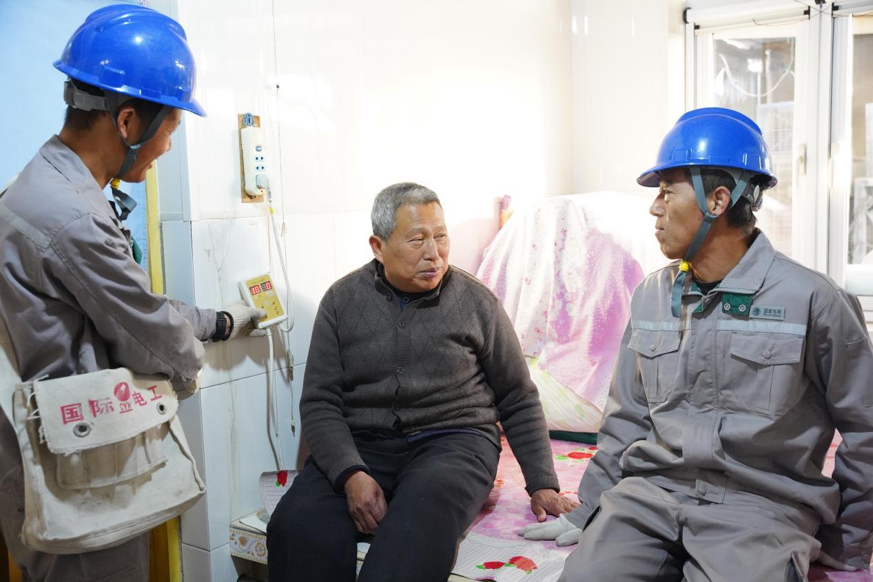 近日,在唐山市丰南区东田庄镇王打刁村村民孙长茂家中,看着电力工人细致排查完电采暖线路,孙大爷握着两位工人的手连连道谢。