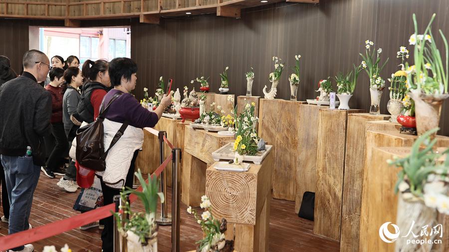 漳州水仙花吸引观展嘉宾驻足拍照。人民网记者 李昌乾摄