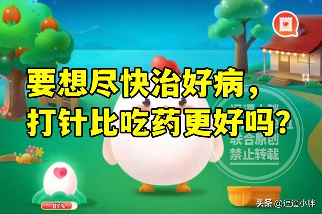 蚂蚁庄园教育:要想尽快治好病,打针比吃药更好吗?A、当然是真的啦 B、需要看实际情况;为什么打呼噜的人通常不会吵醒自己?A、耳朵听不到呼噜声 B、大脑屏蔽了呼噜声;这些都是蚂蚁庄园教育的题目。