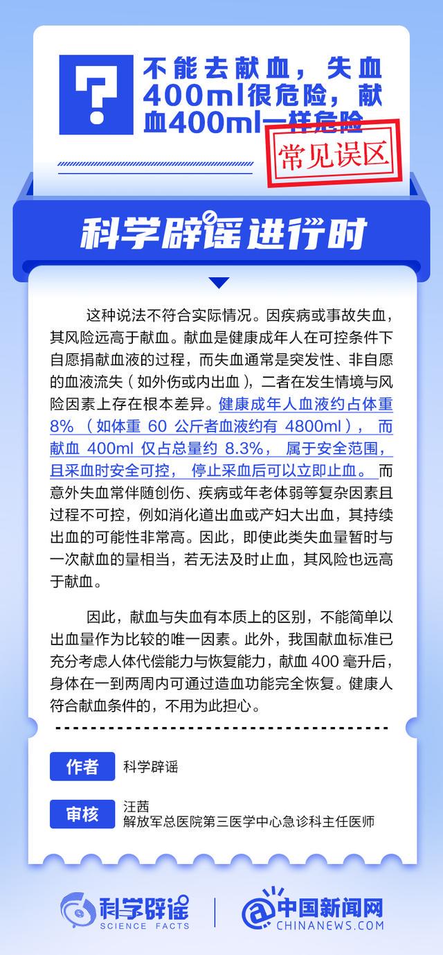 献血与意外失血有本质上的区别,不能简单以出血量作为比较的唯一因素。因疾病或事故失血,其风险远高于献血。献血是健康成年人在可控条件下自愿捐献血液的过程,而意外失血通常是突发性、非自愿的血液流失(如外伤或内出血),二者在发生情境与风险因素上存在根本差异。意外失血常伴随创伤、疾病或年老体弱等复杂因素且过程不可控,例如消化道出血或产妇大出血,持续出血的可能性非常高。