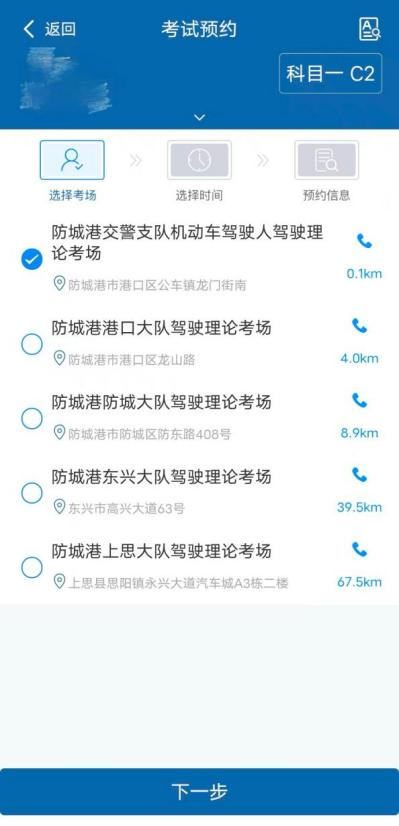 2.点击考试科目按钮,切换到你要预约的科目(如科目一、科目二),选择考试地点预约考试;