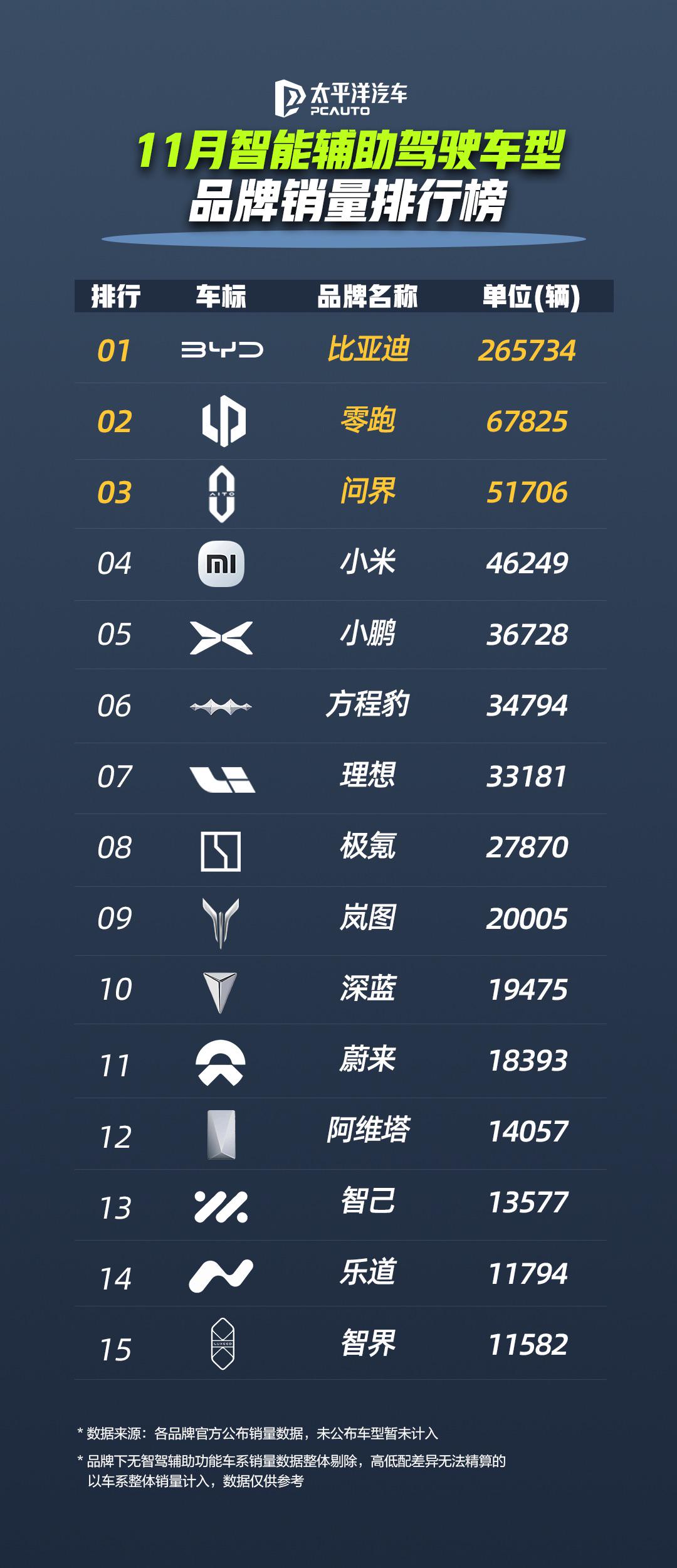 爆了!近期各家都公布了11月的智驾销量,从数据来看,迪子已稳居中国智驾车型销量榜首,特别是搭载“天神之眼”的车型,月销再破31万辆,累计装车量已超230万辆!这意味着,辅助驾驶正从“高端选配”加速普及为“主流标配”。庞大的用户规模带来每天超1.5亿公里的真实路况数据,驱动系统持续进化。更硬核的是,比亚迪此前承诺对智驾安全相关损失“兜底赔偿”,以技术自信和用户担当夯实信赖。通过持续OTA升级加速普及辅助驾驶,比亚迪让智驾体验“越开越聪明”,也推动行业进入“真香”普及期——智驾,正成为用户购车的核心考量。从王朝、海洋到仰望、方程豹,比亚迪全矩阵智驾车型持续热销,一场由中国车企引领的智能驾驶全民时代,已经加速到来!