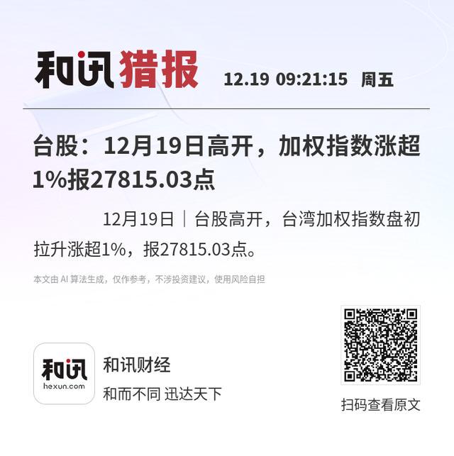 12月19日|台股高开,台湾加权指数盘初拉升涨超1%,报27815.03点。