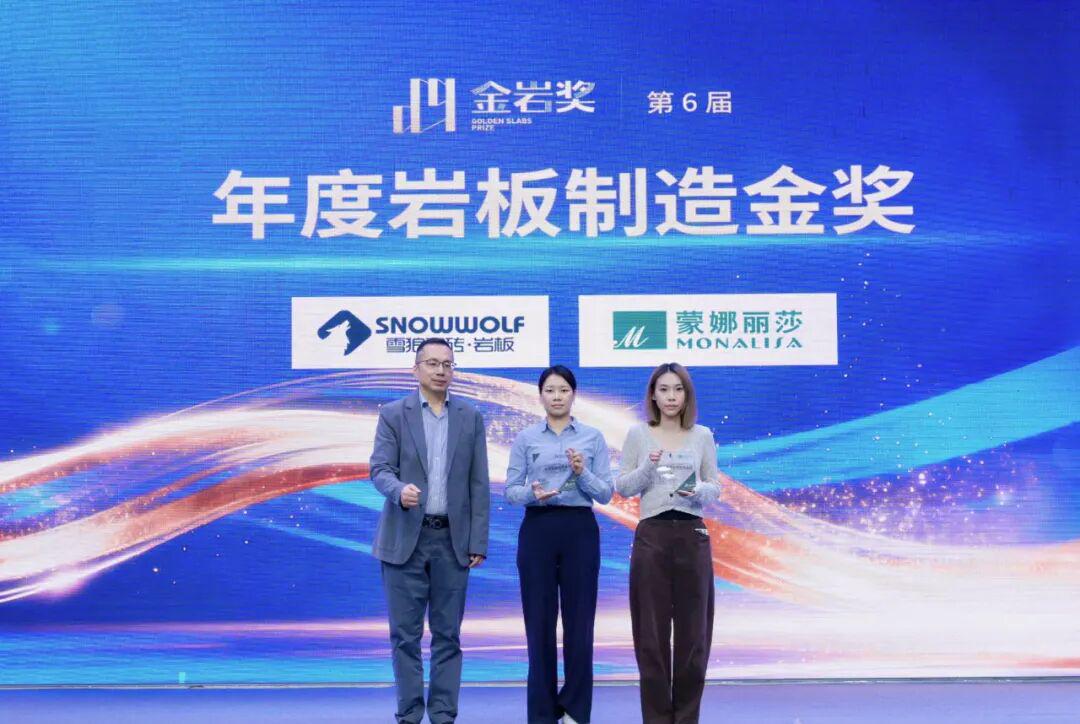 - 2025年度岩板制造金奖:雪狼瓷砖·岩板、蒙娜丽莎集团