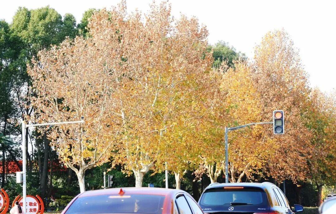 嘉定街头的梧桐树叶变黄了