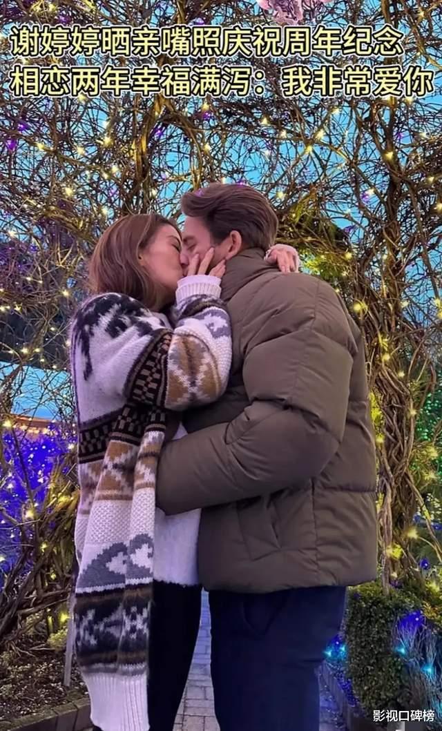谢婷婷与外籍小男友Mathew搂在一起热吻呢,全程甜到掉牙了,真得很浪漫!谢婷婷穿着拼色的针织外套,一头长直发披散着。可能是拍摄的角度,看上去她的身材很高挑,产后不久的她恢复不错。谢婷婷的小男友Mathew穿着短装棉袄,留着络腮胡子,面容俊朗。从她晒出的照片中看, 现场布置很有圣诞气氛。
