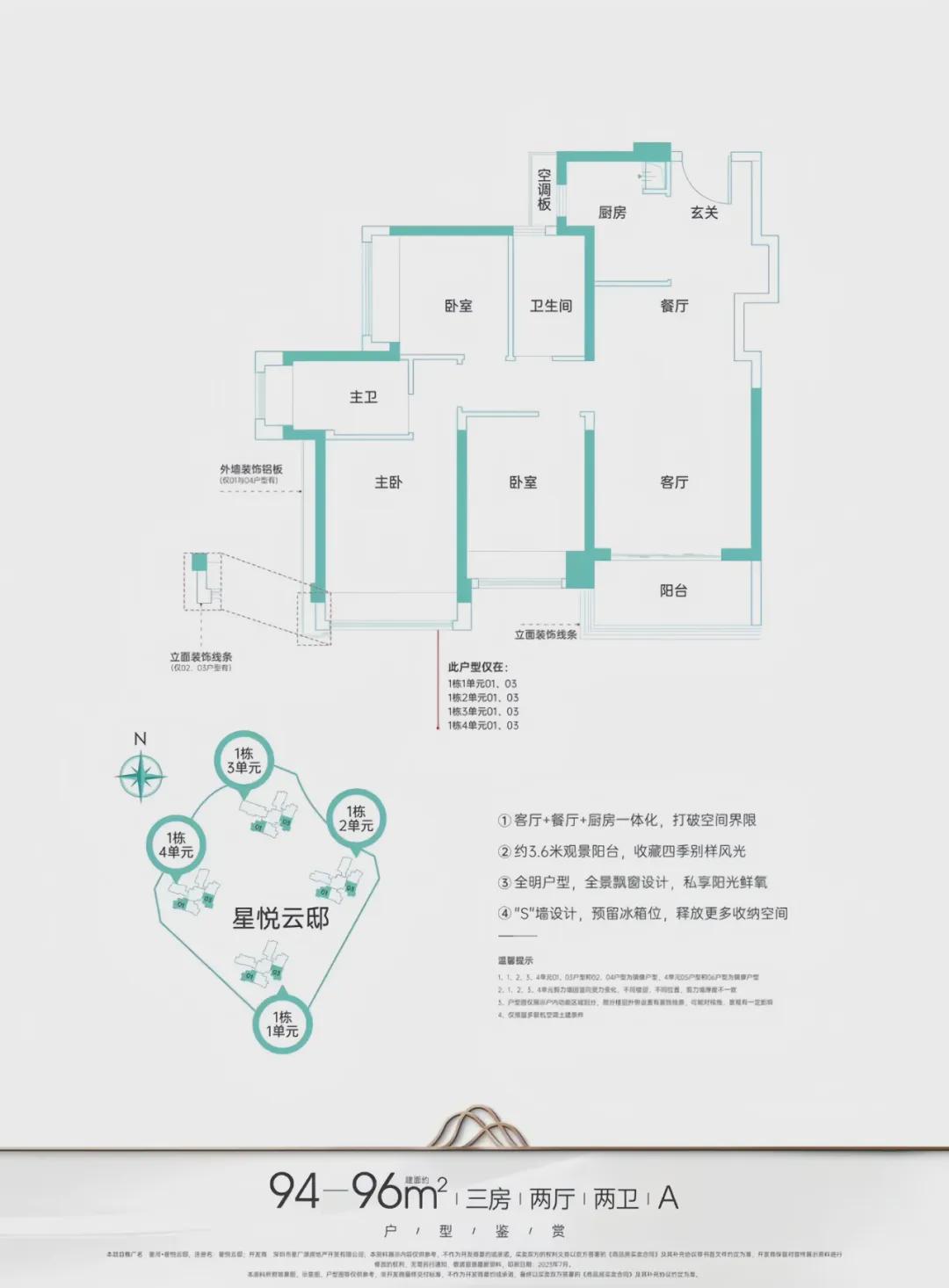 【质感的人居-六维社区】主力建面约95-124㎡三至四房,精工匠造悦居体系