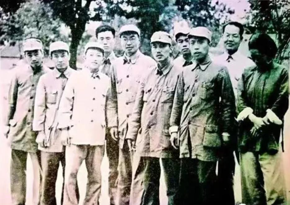 解放战争时期匡亚明(左五)在大众日报社与同事们合影