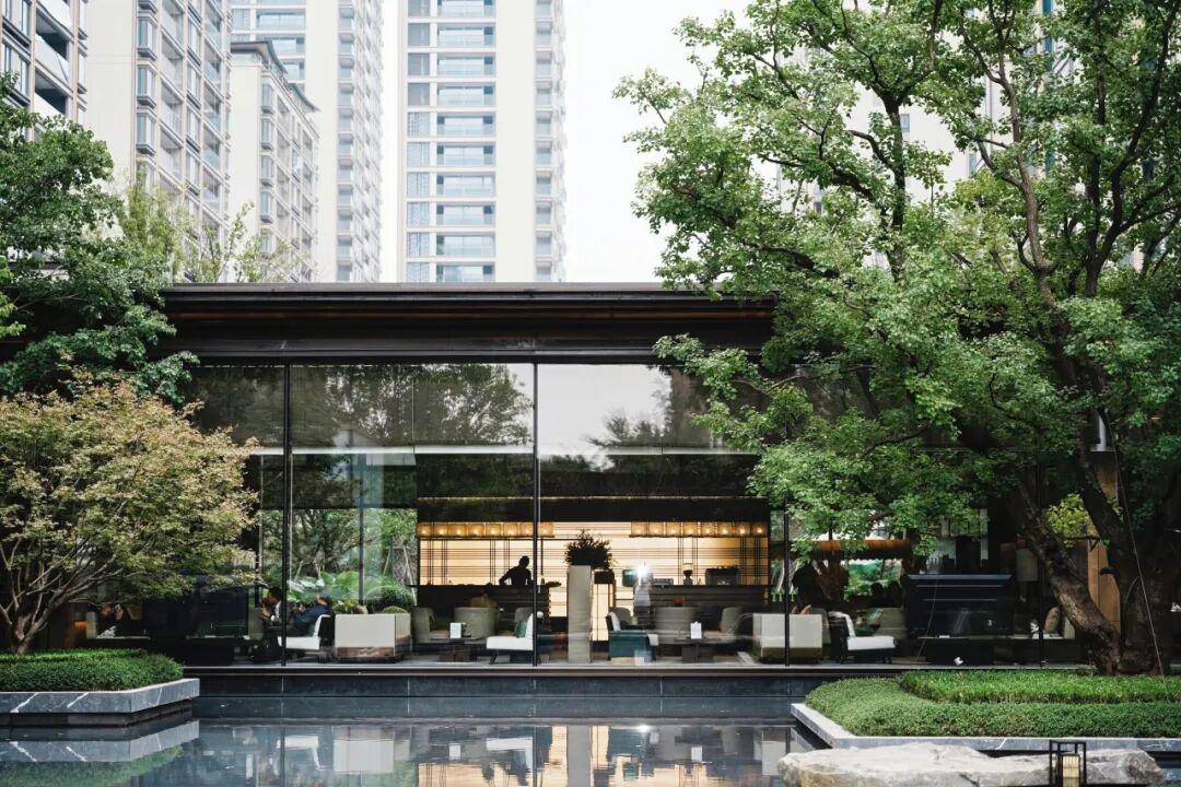 保利·明州瑧悦将中式园林凝练成景,这处是《溪山图》里的叠瀑,那处是倪瓒笔下的枯山水……