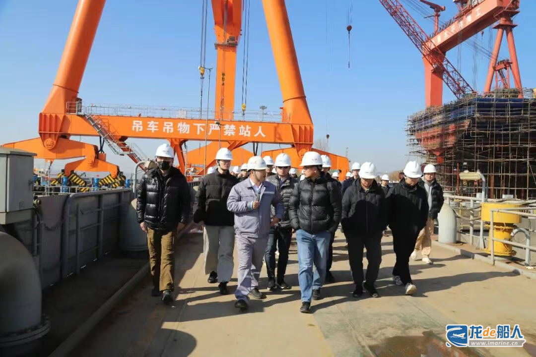 随后,调研团驱车前往西区造船厂,中集太平洋海工拥有3个船台与船坞,可自主进行液化气船与加注船等设计与建造。安环保卫部副部长马钱静先生介绍目前船台、船坞紧密排产,并带领调研团实地考察了20,000立方米LNG加注船及40,000立方米MGC船的在建情况,对其建造进度、技术难点及设计特点等进行了详尽探讨。同时指出,中集太平洋海工目前LNG加注运输船在手订单与交付数量领先全球。此外,产能方面中集太平洋海工与外部合作新增船台提高造船产能,叠加舟山海工燃料罐产线落地,将进一步扩大整体产能。