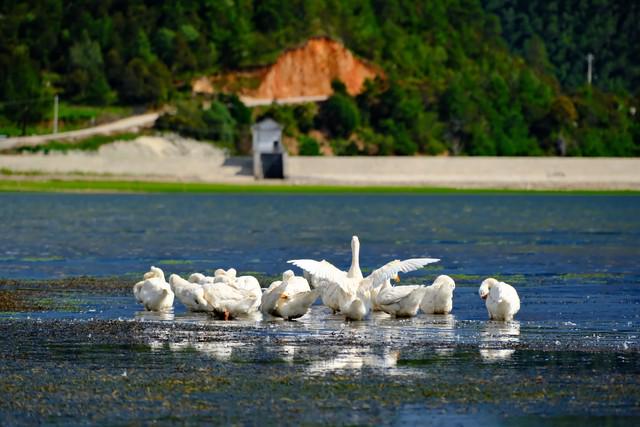 赛里木湖:晨雾中的湖山守护与水鸟翩跹