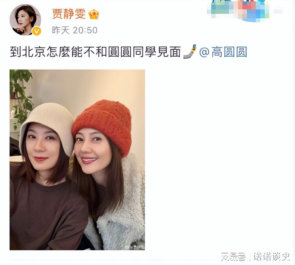 近日,贾静雯在社交平台晒出和高圆圆的同框照,配文就简单一句:
