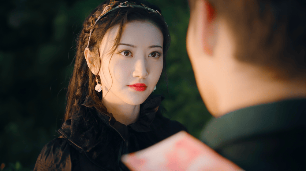 另一套白蝴蝶外披 + 绿旗袍的组合,则多了几分柔情。白色蝴蝶纹样披肩与裙身的淡绿蕾丝呼应,镂空设计若隐若现,搭配复古卷发,完美展现司藤与秦放初相处时的妩媚与优雅,打破了初期的冷硬感。