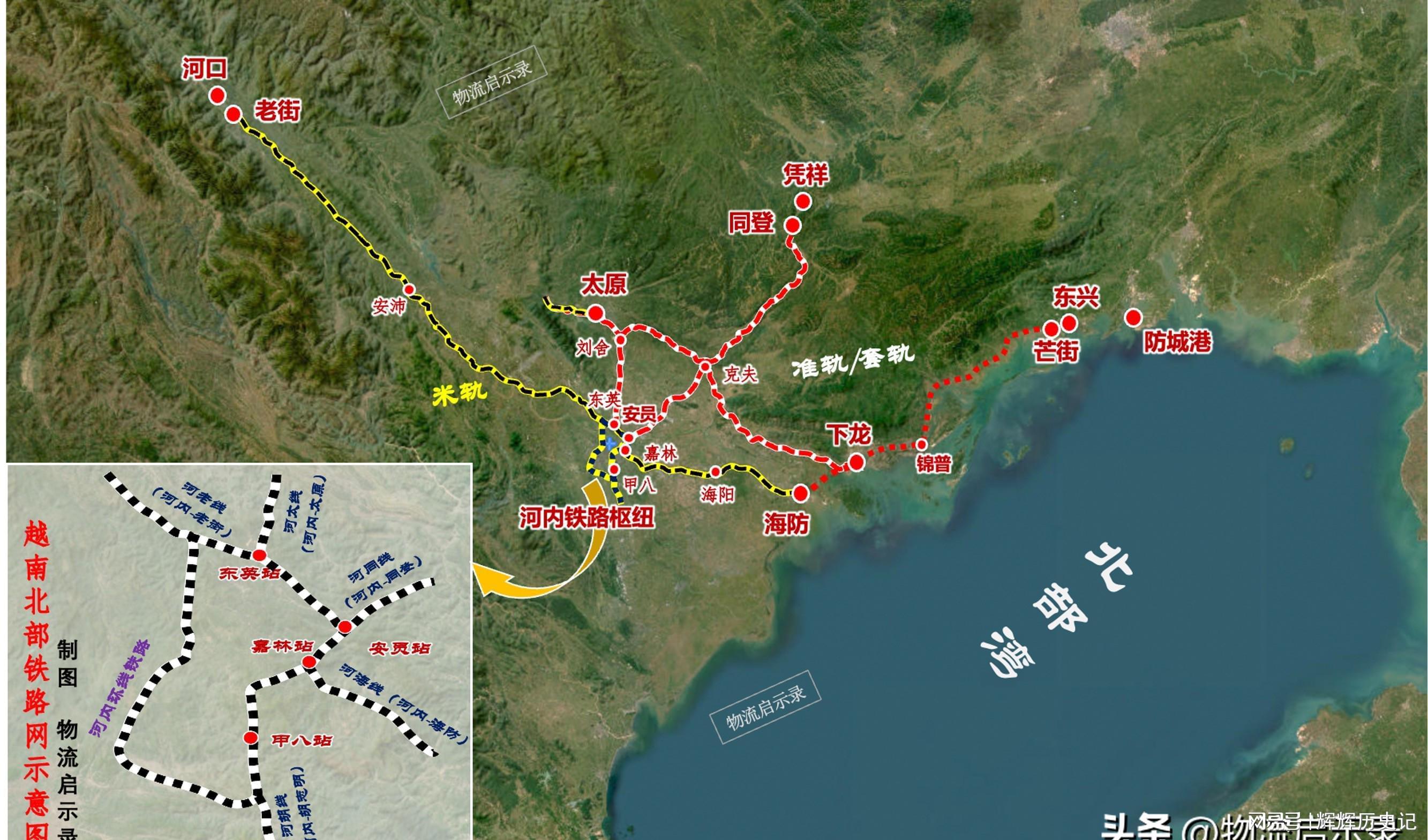 目前,中越之间规划了三条跨境准轨铁路,分别是老街-河内-海防铁路、同登-河内铁路、芒街-下龙-海防铁路。其中,“老街–河内–海防”铁路居于最优先位置。