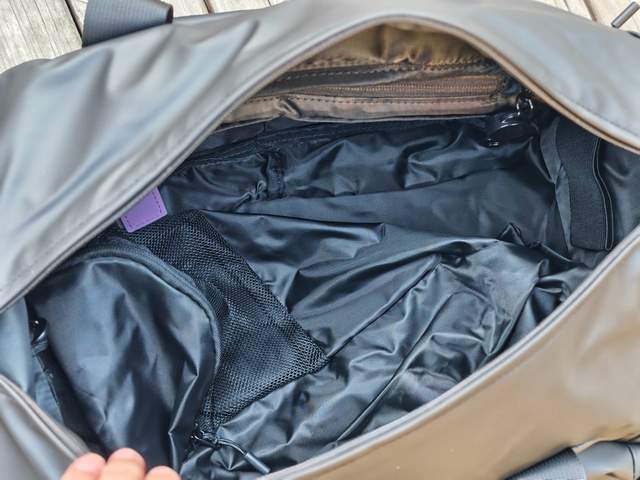 健身房场景中,它的实用性被发挥到极致。每次健身前,我会把运动鞋塞进独立鞋仓,湿毛巾和运动袜放在鞋仓内侧的小口袋,完全不用担心潮气污染主仓里的干净衣物。主仓的水壶固定弹力带帮我解决了大难题——之前用的包总让水壶倾倒漏水,而这款包的弹力带能根据水壶尺寸自动调节松紧,运动间隙取用水壶时单手就能操作,喝完塞回去又能稳稳固定。