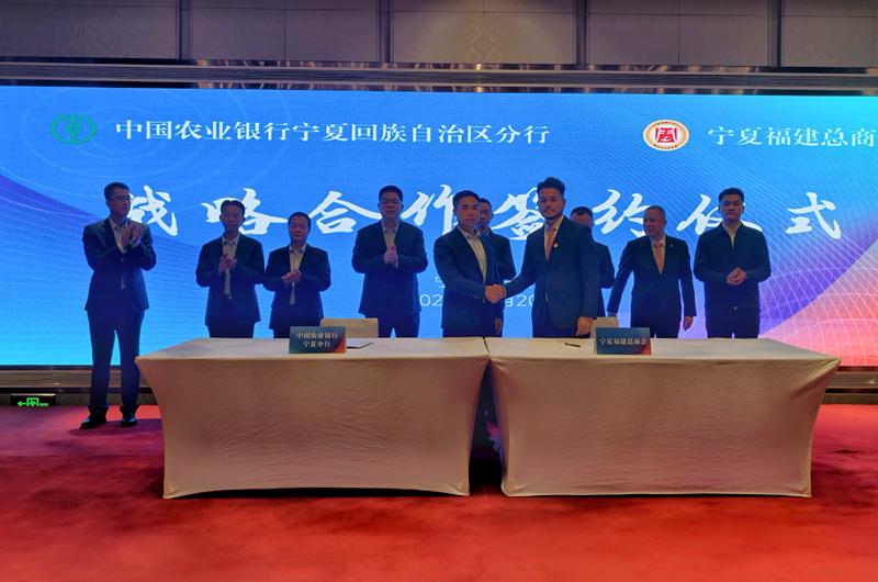 人民网银川12月20日电 (记者梁宏鑫)12月20日,中国农业银行宁夏回族自治区分行与宁夏福建总商会举行战略合作签约仪式,双方以金融为纽带深化闽宁协作,共同开启银商共赢、助力地方高质量发展的崭新篇章。