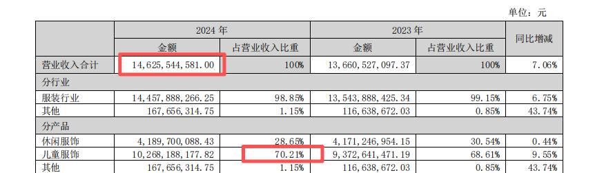 巴拉巴拉的童装生意一路高歌,2024年森马总营收146.26亿元,巴拉巴拉的占比高达70.21%,妥妥撑起集团七成江山。
