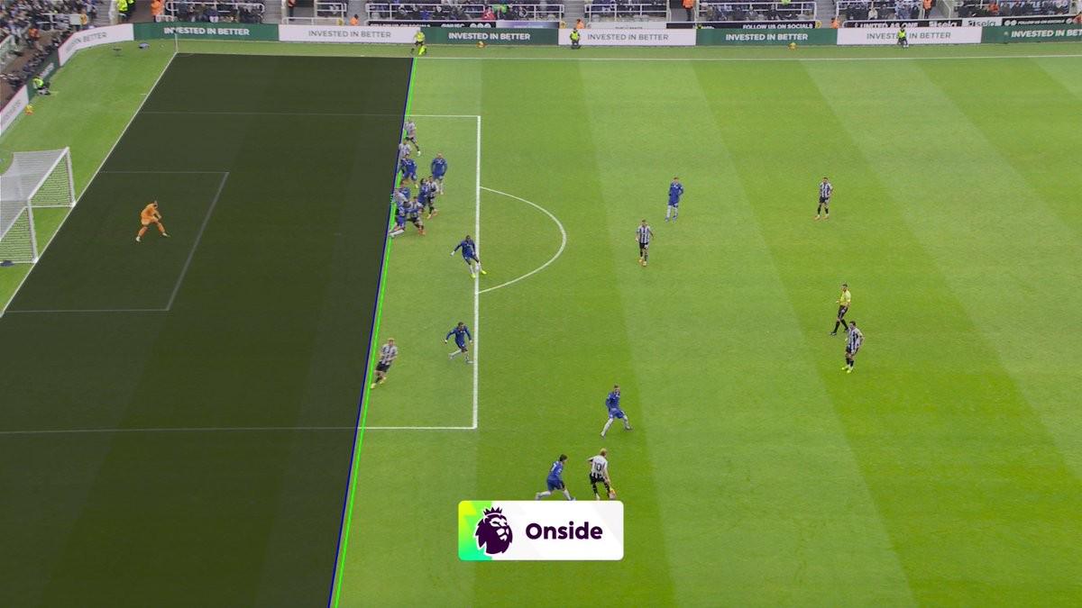 英超第17轮,纽卡斯尔联主场对阵切尔西,上半场第20分钟,沃尔特马德破门为纽卡扩大比分,VAR手动划线认定沃尔特马德不越位,英超官方对此解释称,由于技术问题,半自动越位技术无法使用。