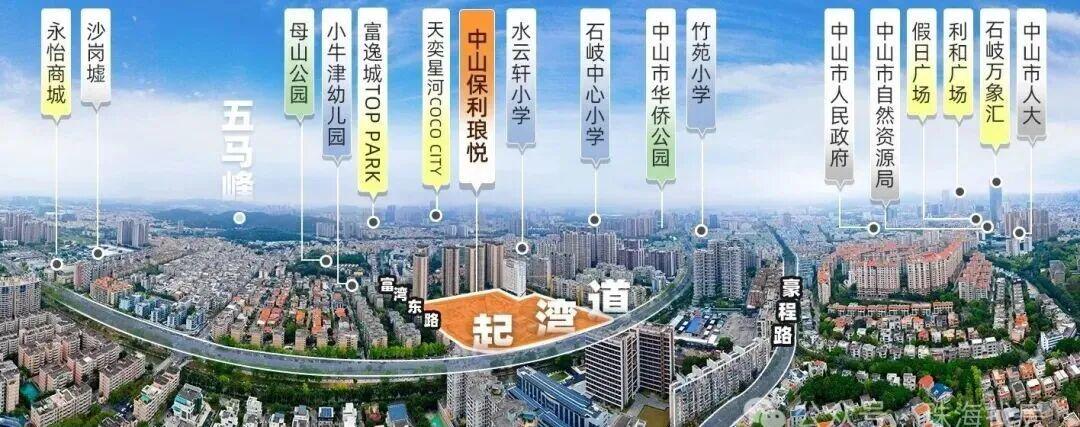 一条起湾道,坐落有中山优质的教育资源,自南向北分布有四所省一级学校,市一中、朗晴小学、水云轩小学、华侨中学,属于文化气息浓厚、学风优良之地。其中比邻的省一级水云轩小学(东区前2,全市前五),引入了430课后服务平台的美育课程,丰富多样的艺术类课程,旨在培养学生全面发展、个性化成长。学校直线距离约400m,家与学校一路之隔,孩子放学从容归家。