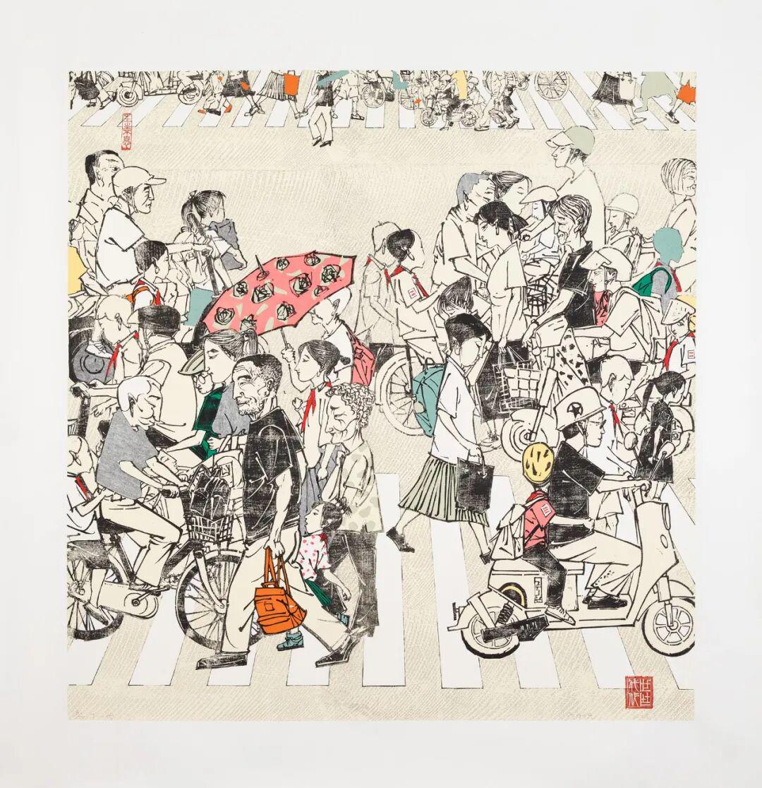方利民《下一代》135cm×130cm 水印木刻 2024年