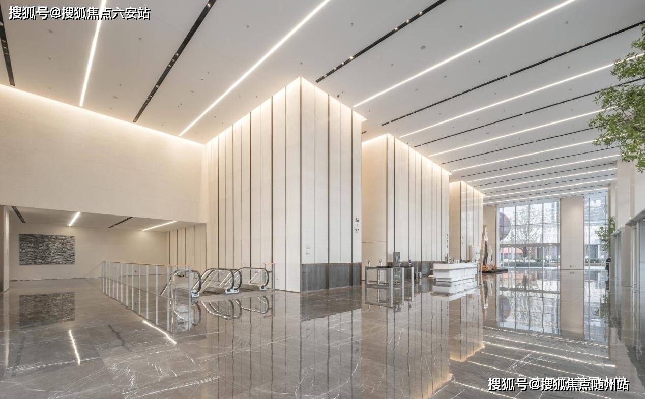 项目采用双大堂设计彰显尊贵体验:首层约8.7米挑高大堂,建筑面积约1000㎡;38层设空中观景大堂,可俯瞰玉湖生态景观与杭州城市天际线。