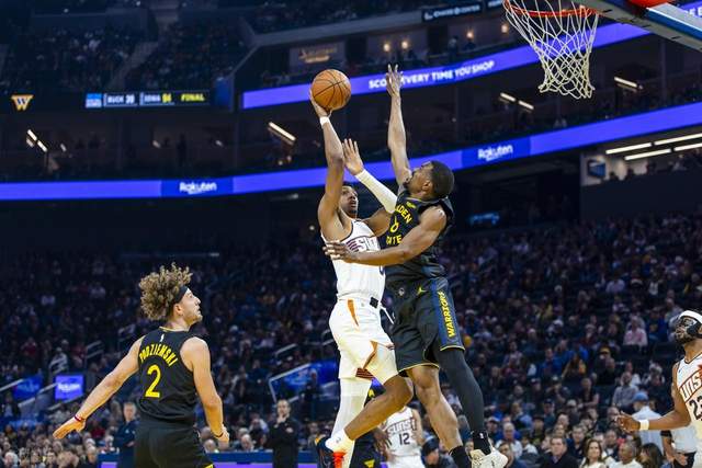 此役开局,布克与狄龙便轮番向内线发难,巴特勒则依靠连续制造杀伤艰难为勇士稳住局势。首节前5分钟,双方攻防拉锯陷入胶着,比分紧咬至15-15平。随后太阳率先发力,连得5分抢占领先,即便勇士追至20-22,太阳仍迅速轰出14-4的攻势将分差拉开至12分。勇士全程被压制,首节战罢以32-44落后太阳12分。