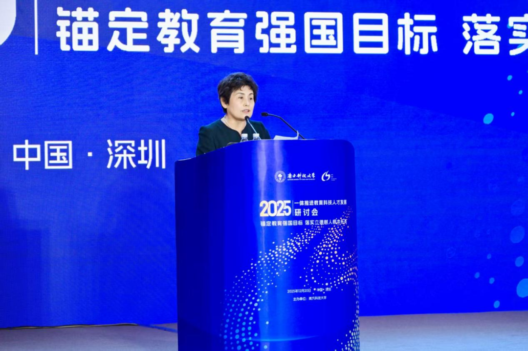 林蕙青在致辞中强调,我国要实现向创新型国家前列的跨越,迫切需要打破教育、科技、人才领域的壁垒,形成三者良性互动、高效协同的发展格局。高等教育是连接教育、人才、创新、产业四链的核心枢纽,在推动“三位一体”发展中使命关键。南方科技大学作为新型研究型大学的先行者,在融合发展方面探索出特色路径,为全国高校提供了宝贵经验。她表示,在推进教育科技人才一体发展的进程中,一要以立德树人为根本,将价值引领贯穿全过程,改革培养模式,构建“三位一体”协同育人体系;二要以科技创新为引擎,主动对接国家重大战略需求,完善“产学研用”机制,实现“出成果”与“出人才”双丰收;三要以体制机制改革为保障,破除障碍,统筹资源配置,优化发展生态;四要以能力建设为支撑,提升教师综合素养,以数智化赋能教育高质量发展。各方应抓住“十五五”关键时期,凝聚共识,共同为服务教育强国、科技强国、人才强国建设作出更大贡献。