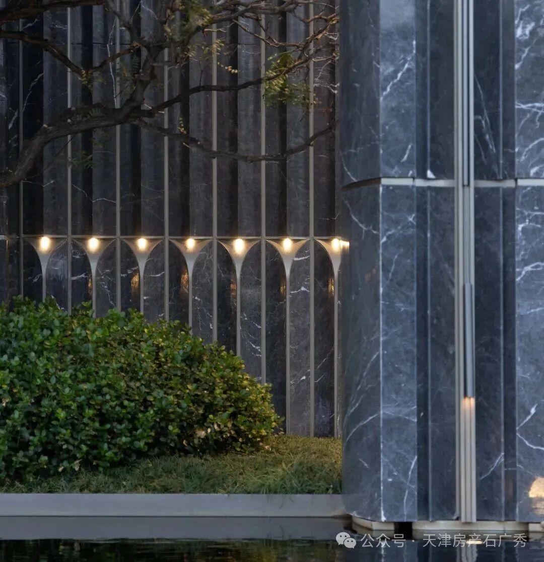奢石+蓝调陶板柱式+质感金属+精密精工锻雕组合